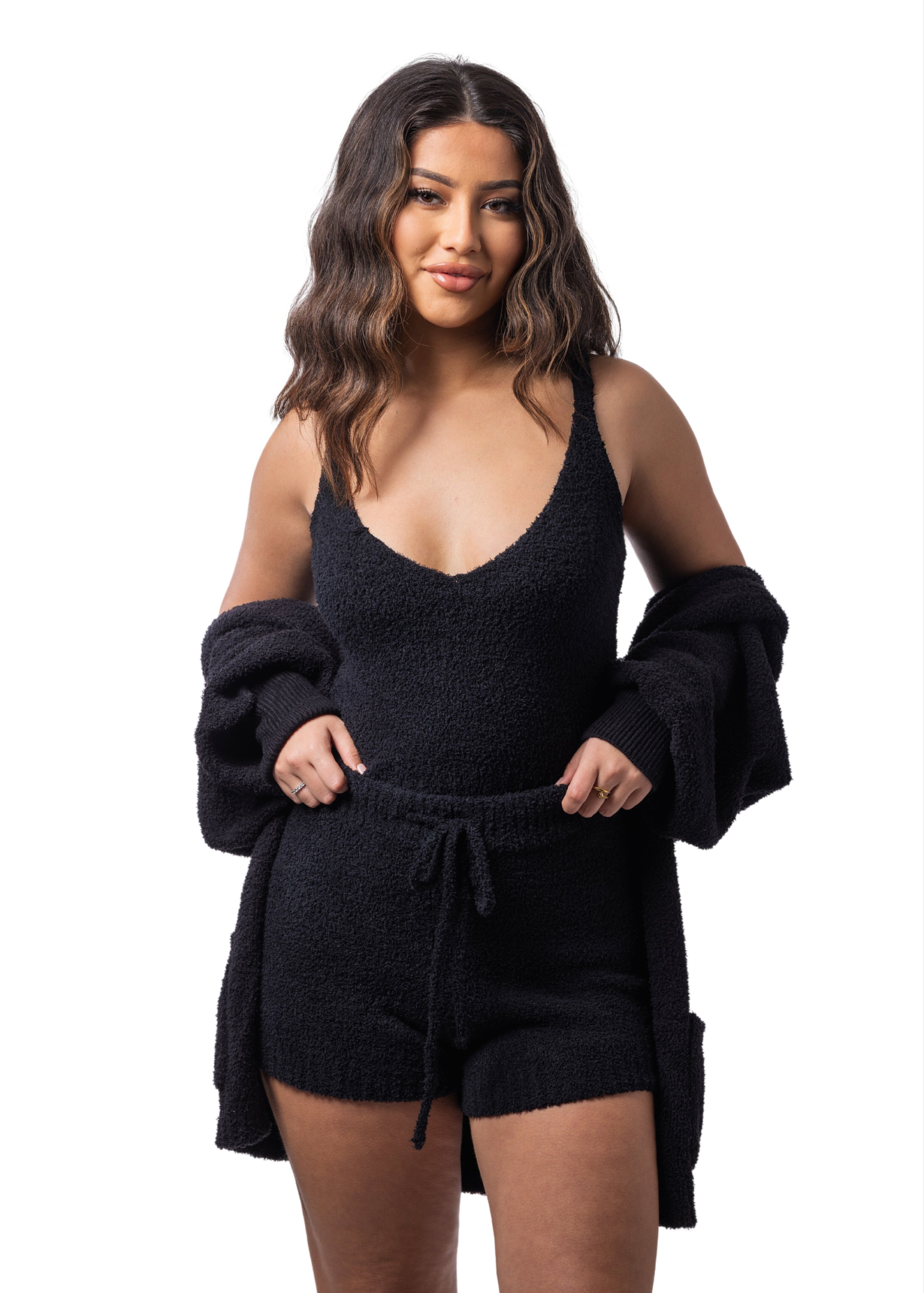 SLUMBER GIRL SHORTS + CARDIGAN TEDDY (3-PIECE SET) Sultry Black