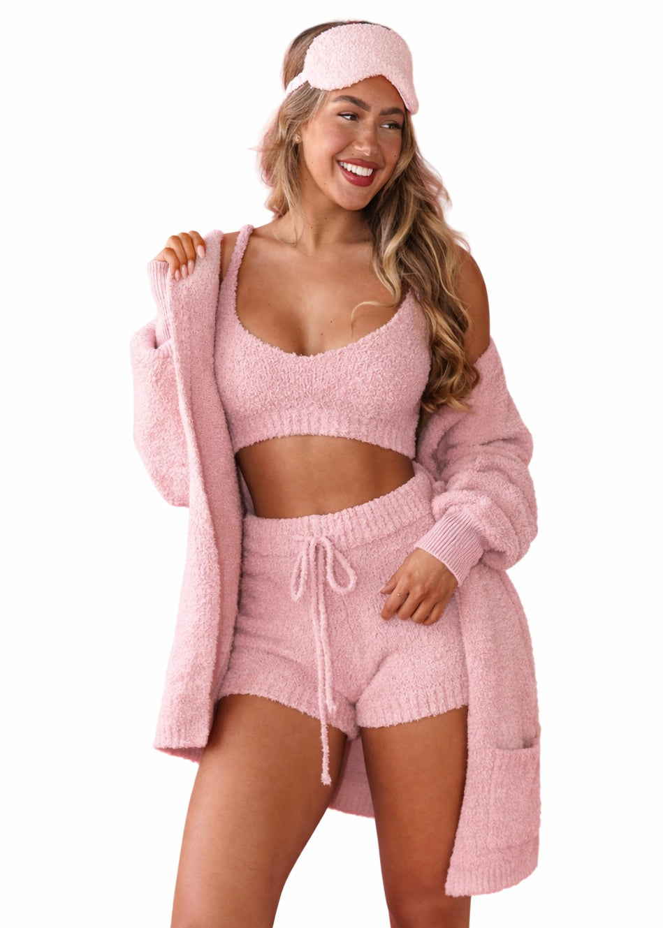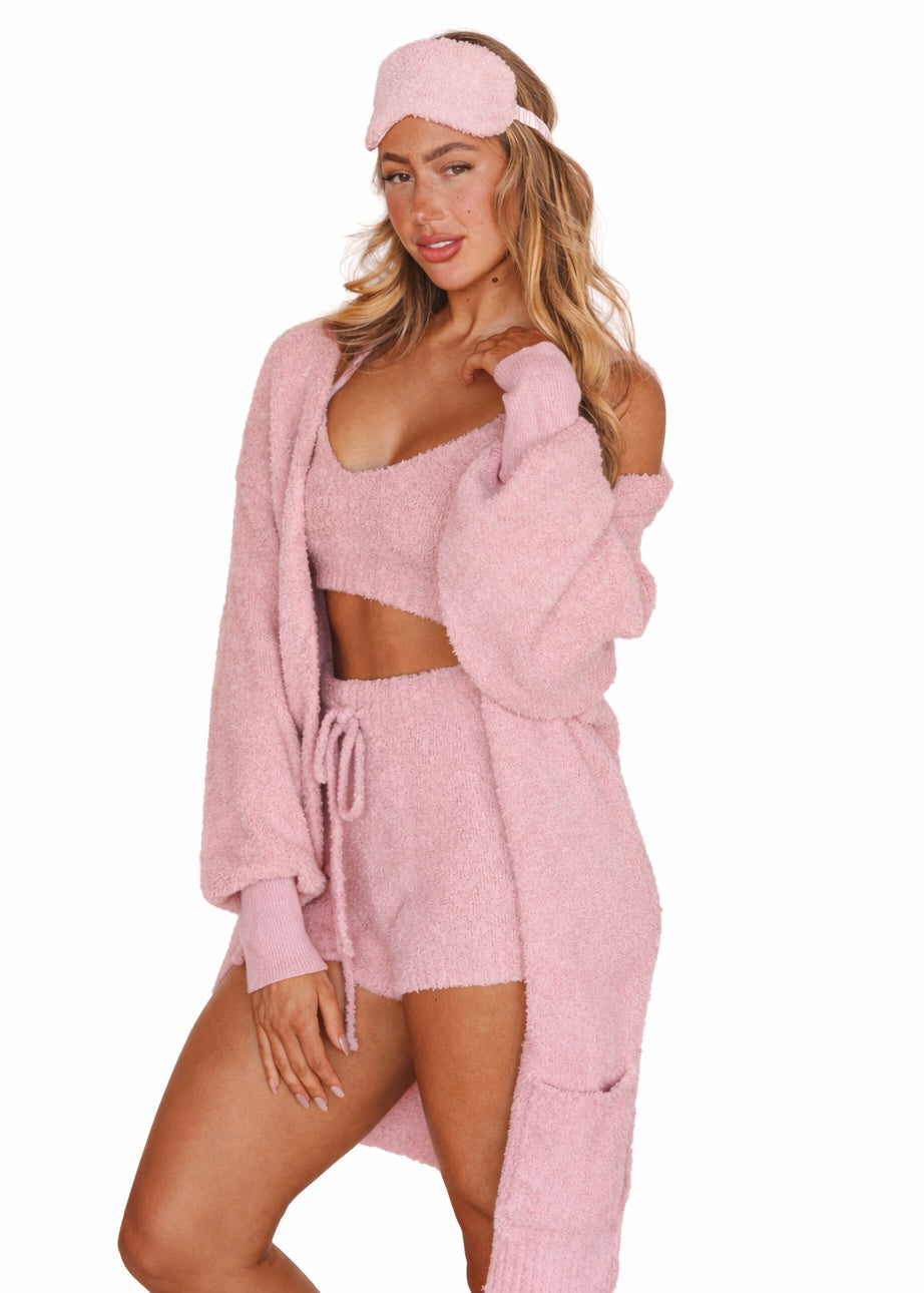 BAE SHORTS + CROP + CARDIGAN TEDDY (3-PIECE SET) Blush Pink